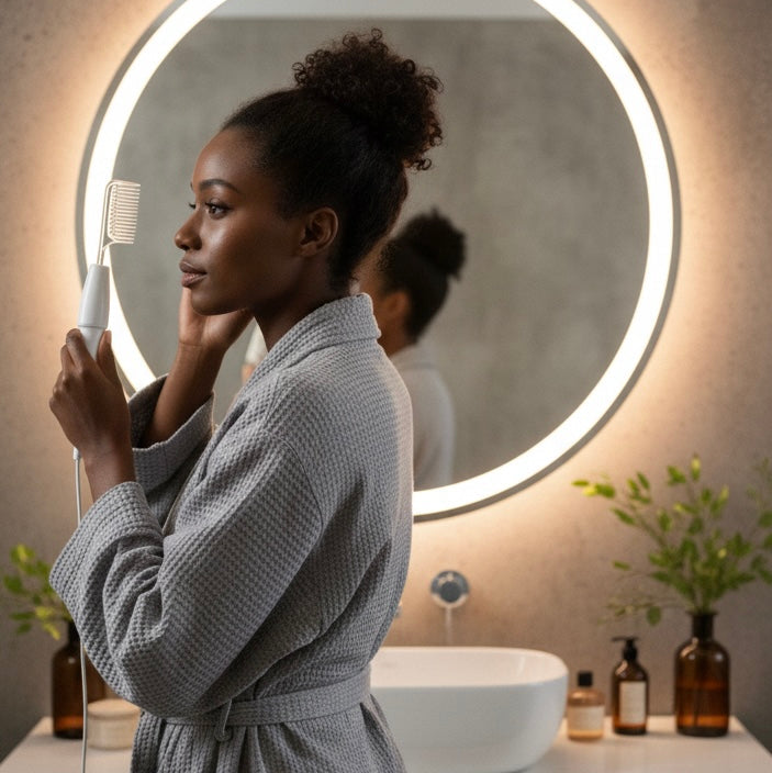 Dank der verschiedenen Aufsätze kann sowohl das Hautbild gezielt verbessert als auch die Kopfhaut stimuliert werden. Mit dem speziellen Kammaufsatz wird die Durchblutung der Kopfhaut gefördert und das Haarwachstum unterstützt.